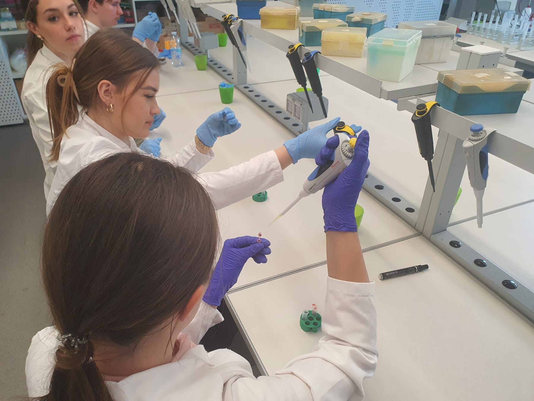 ✅ практичан рад у лабораторији: уживо, ученици и ученице су се суочили са изазовом „DNA fingerprinting“-а. Захваљујући претходној припреми, могли су технички свесно да изведу поређење генома, што је кључна процедура у медицини, форензици и генетици.