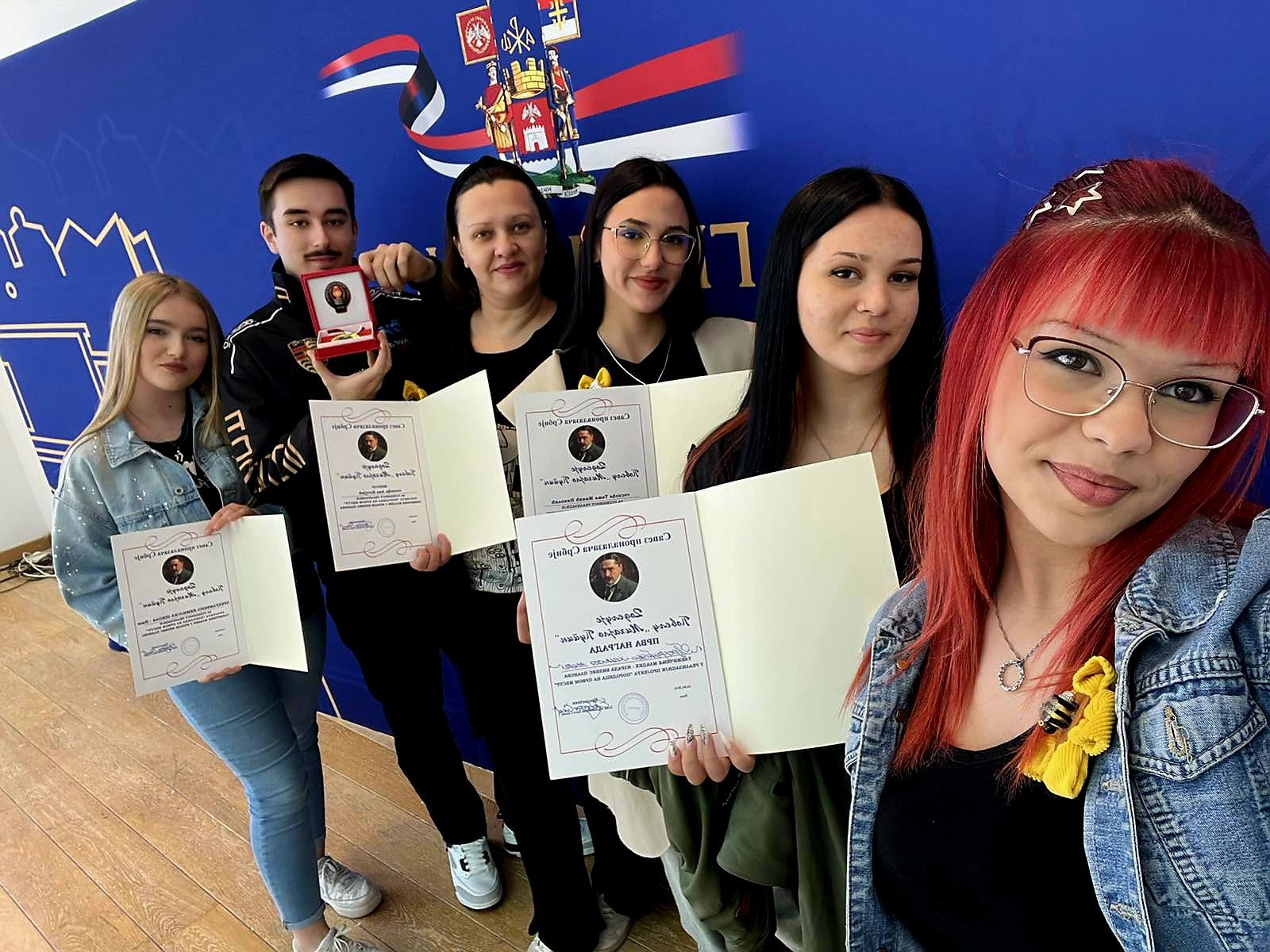 Додељене су повеље на име школе, директорке и ментора, као и сребрњак са позлатом ca ликом Михаила Пупина.