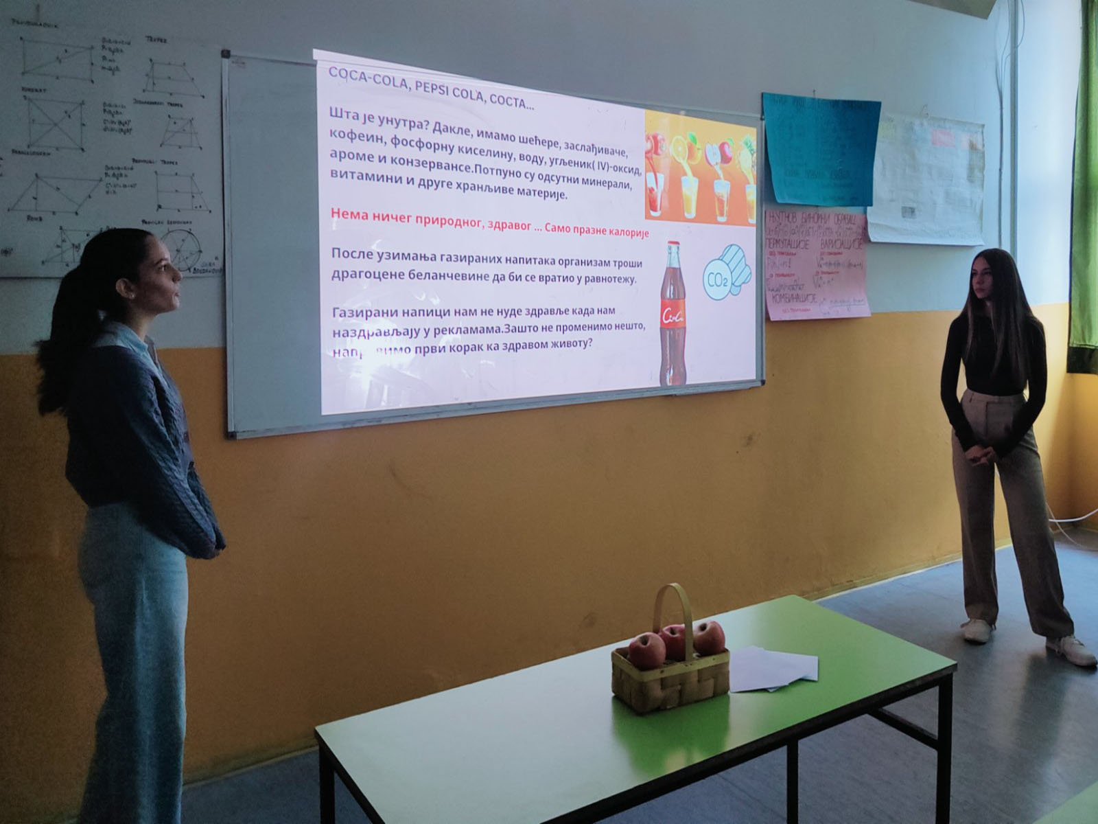 У оквиру пројектне недеље ,,Храни се здраво, имаш право,, чланови секције Здрава исхрана-стил живота, ученици одељења 2-4, 3-4, 4-4 и наставници Весна Стоицев и Наташа Ноцић, одржали су данас јавни час са темом Принципи правилне исхране и пирамида исхране.